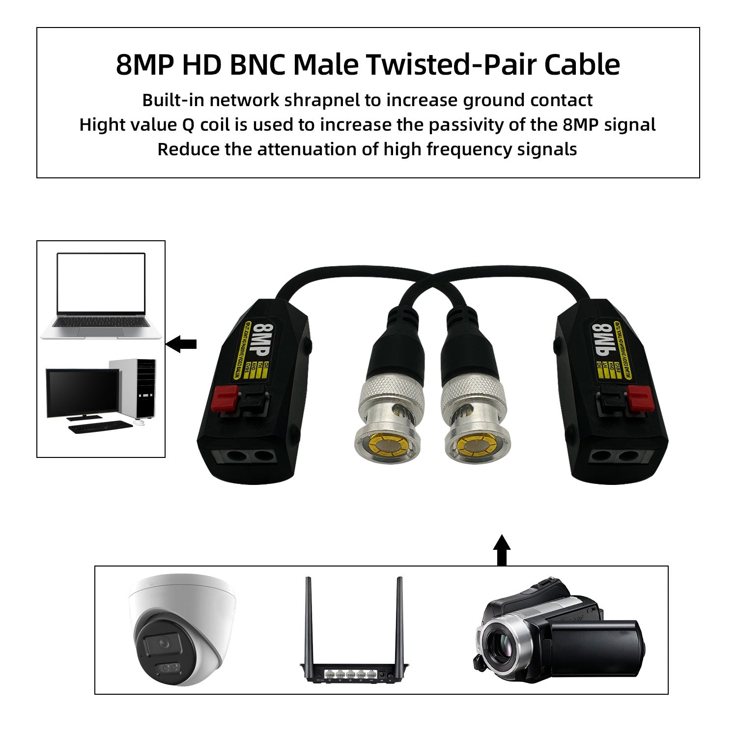 4pcs 8MP BNC Video Baluns, Passive Connectors for CCTV Surveillance Cameras/HD/CVI/AHD/TVI/CVBS