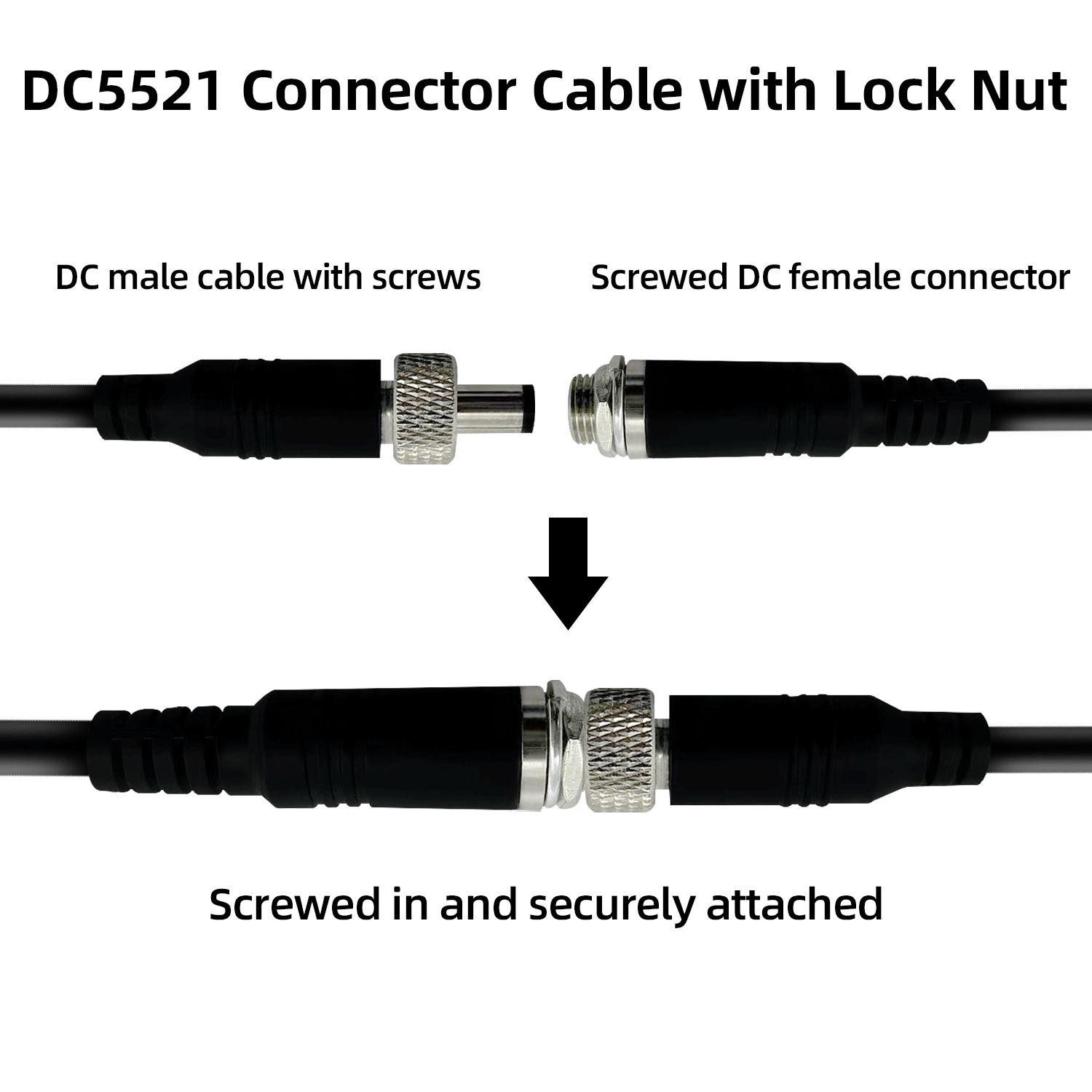 - Features: 5.5x2.1 mm male/female screw cable locking connection that locks the device in place and prevents it from falling out, providing reliable security for critical applications