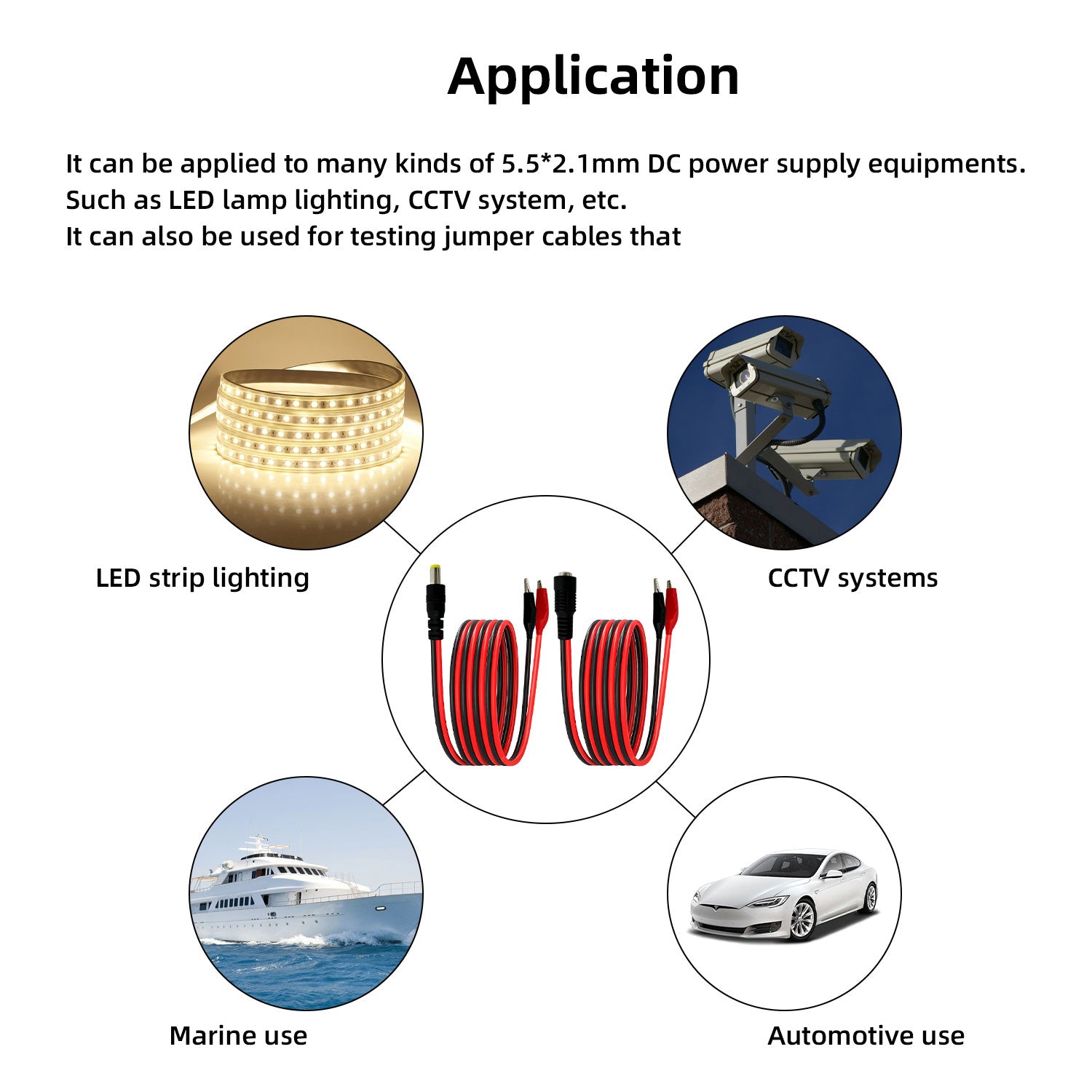 5.5x2.1mm / 5.5x2.5mm Male/Female Barrel Connector to Alligator Clip Power Extension Cable for CCTV Security Camera Lighting Adapter
