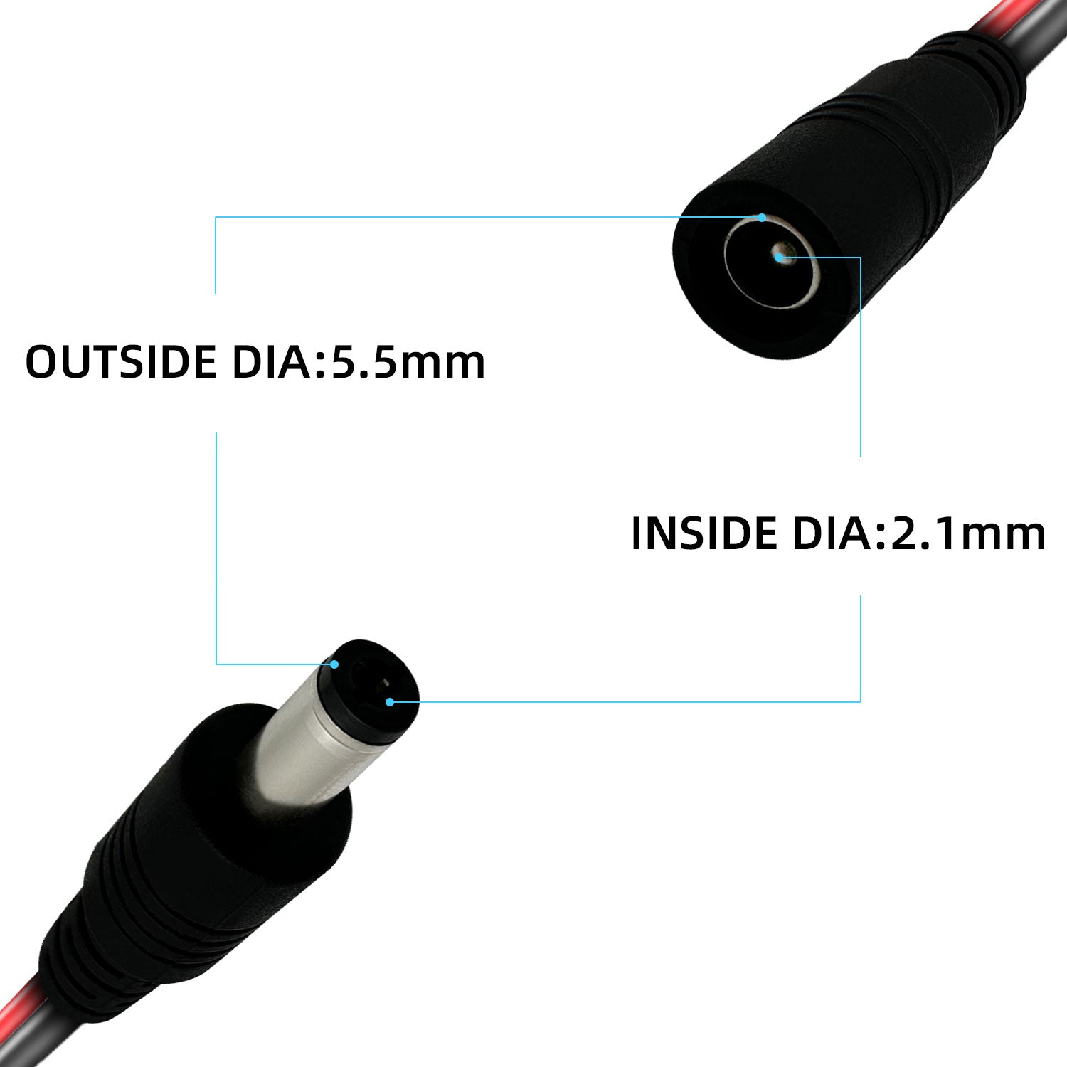 - You will receive 100% brand new pigtailed DC power cables, when purchasing please note that your DC end connector size matches 5.5x2.1mm