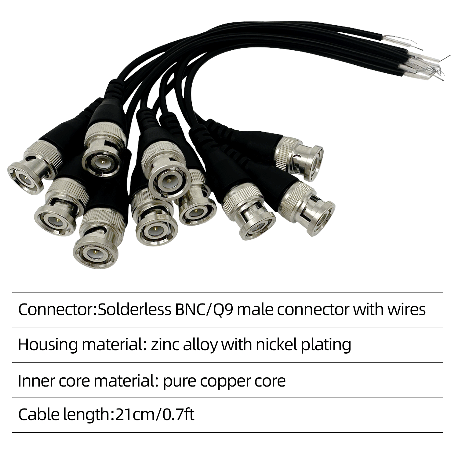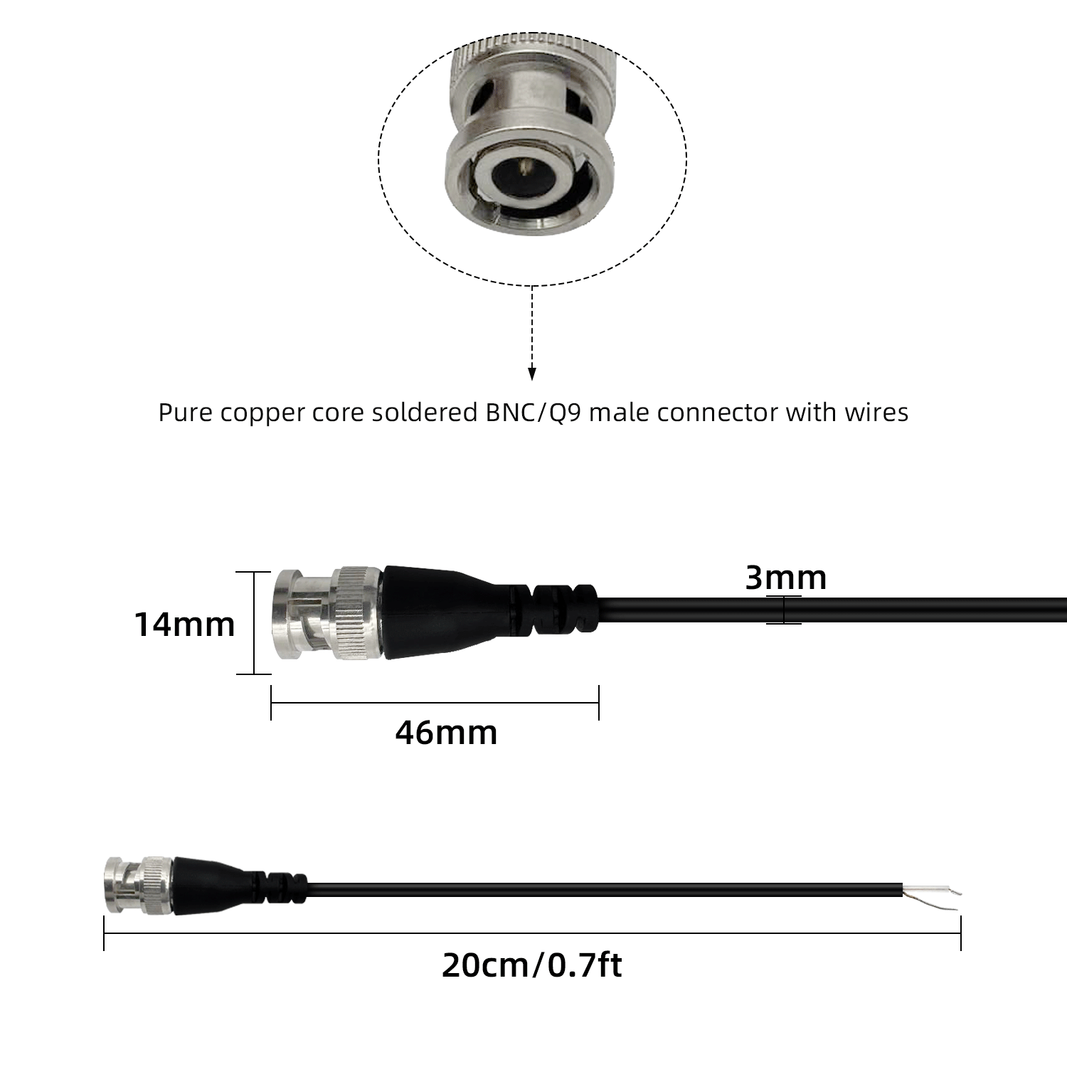 - International standard interface: BNC male with tail line, standard interface, more solid connection, more stable signal transmission, integrated cold press molding, safe and reliable
