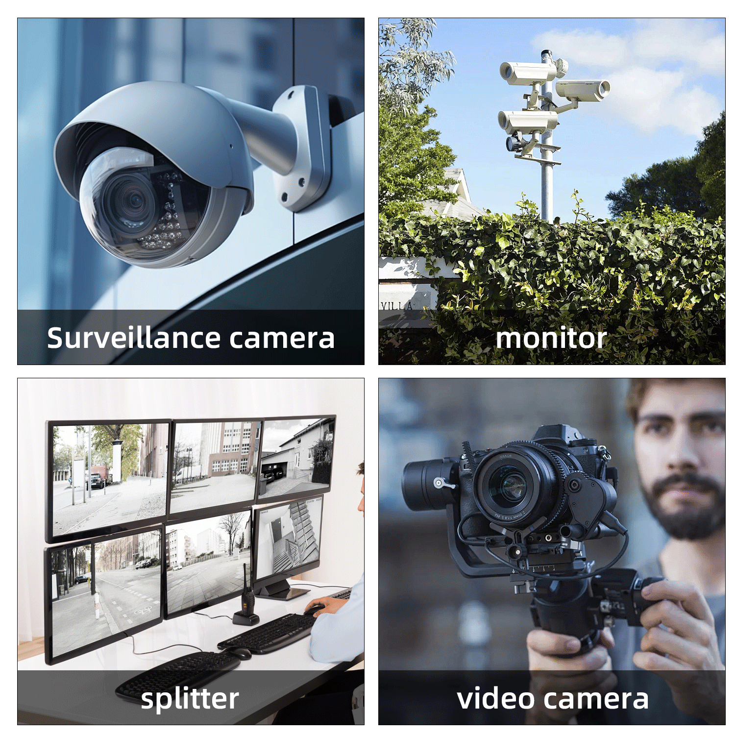 - Widely used: surveillance cameras, distributors, monitors, multi-screen distributors, video matrix, lightning arrester connection