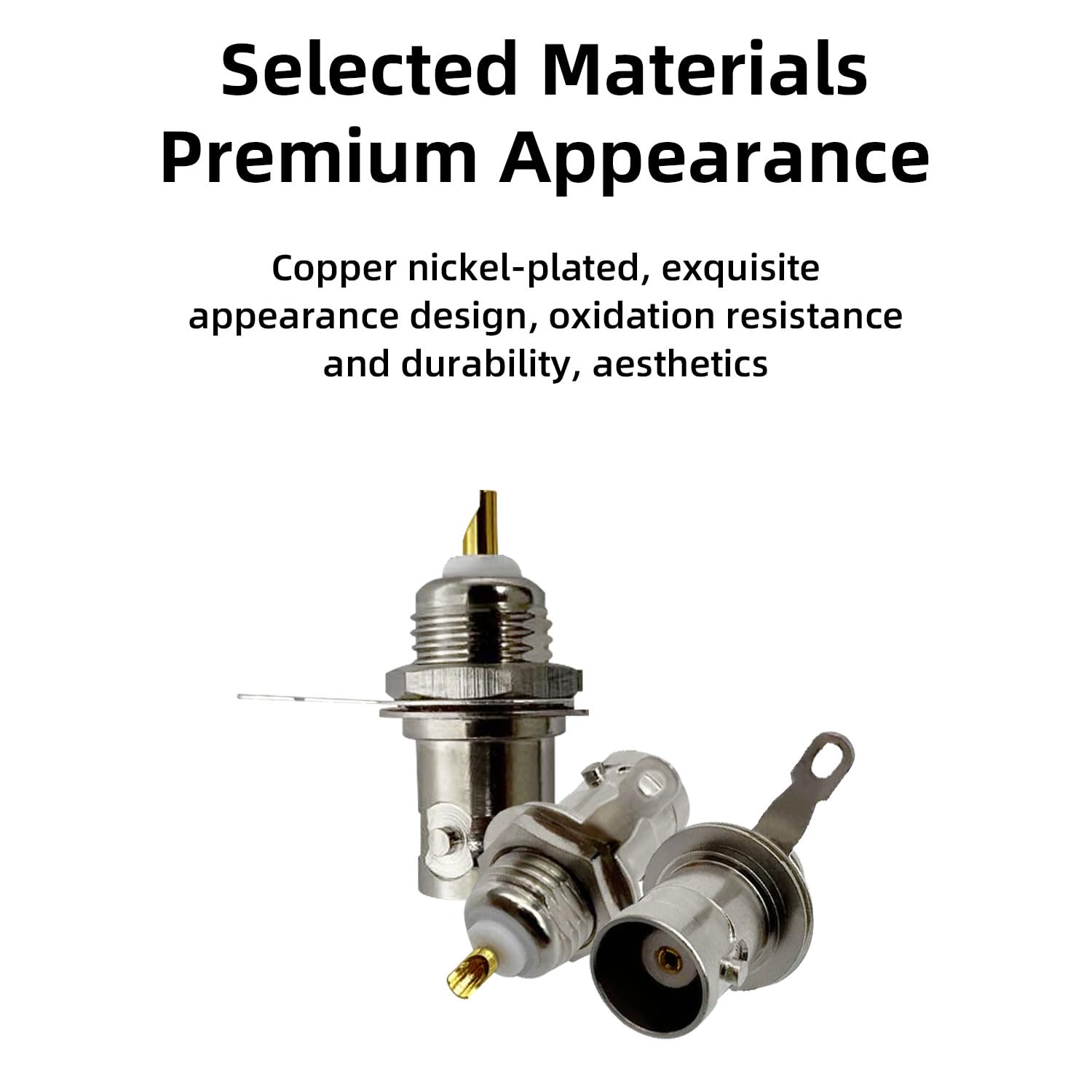 - Wide range of applications: bnc solder female chassis connectors are suitable for test equipment, antennas, broadcasting, radio, Wi-Fi, telecom, coaxial cable, LMR, WLAN equipment, CCTV, automotive, medical, SATCOM, base stations, cable modems, microwave applications, digital communication systems, avionics, analog and serial-digital interfaces, and video signals.