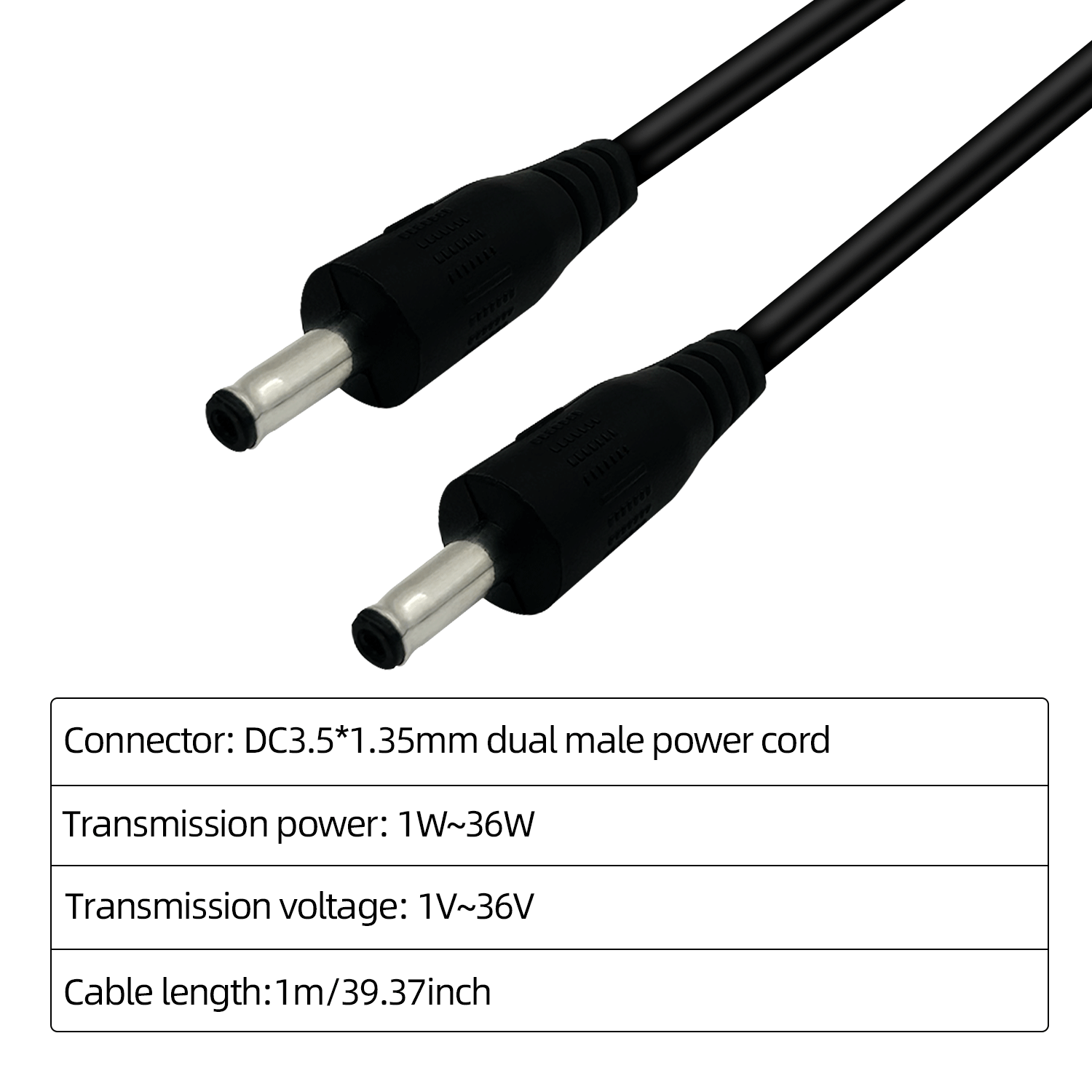 - Connector Size: 3.5x1.35mm to 3.5x1.35mm Dual Male Cable This power cord is designed to convert the common DC3.5x1.35mm male plug to the rare DC5.5 x2.1mm/5.5x2.5mm male plug