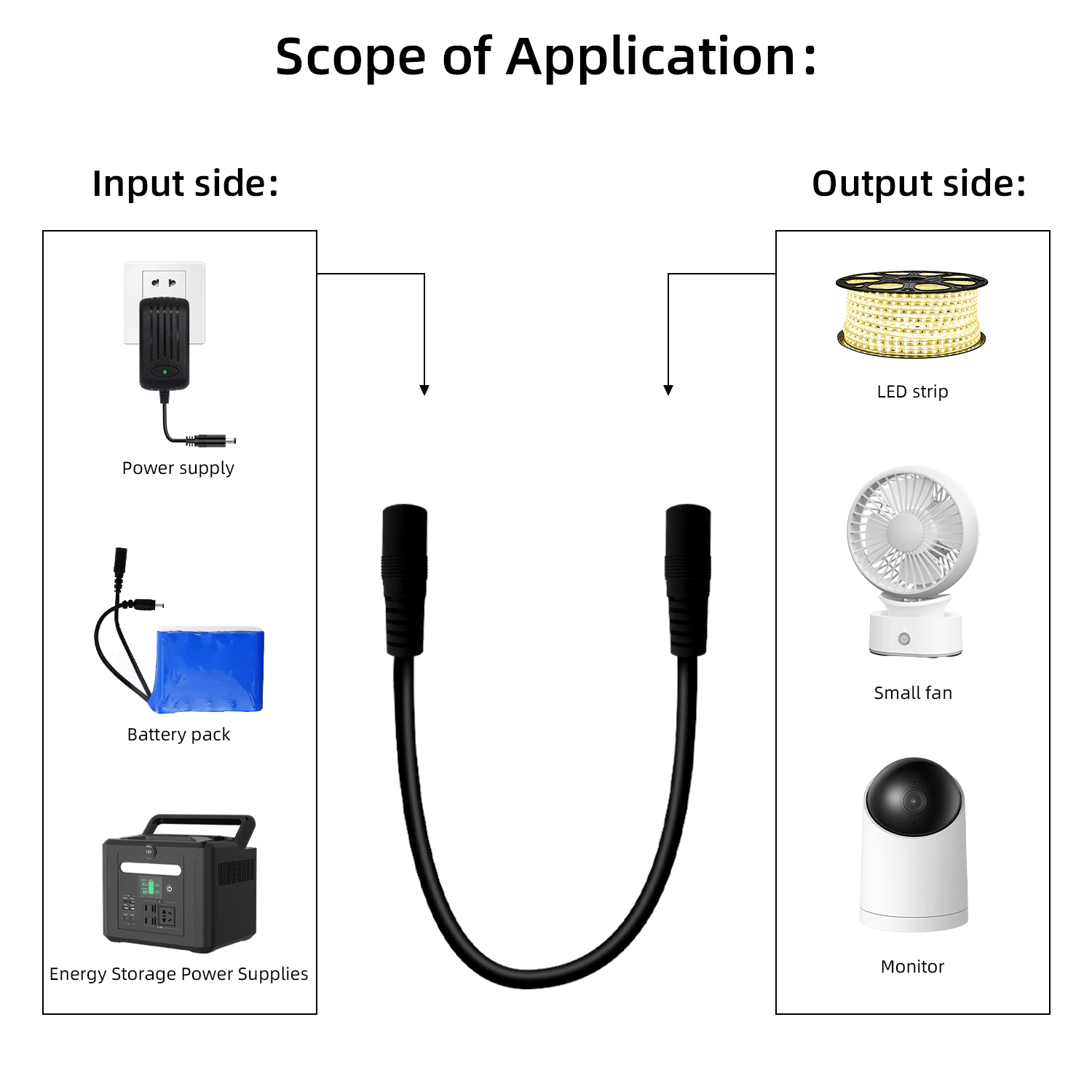 - Applicable devices; portable and convenient small fan; home security camera LED light strip Battery pack connector
