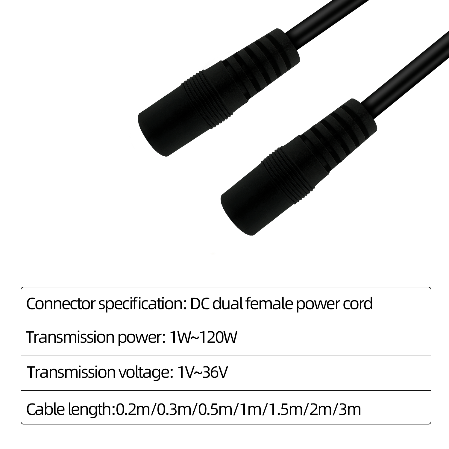 - Product parameters; Length 0.65ft/1ft/1.6ft/3.3ft/4.9ft/6.5ft/9.8ft Transmission voltage; 1v-36v Transmission power 1w-120w