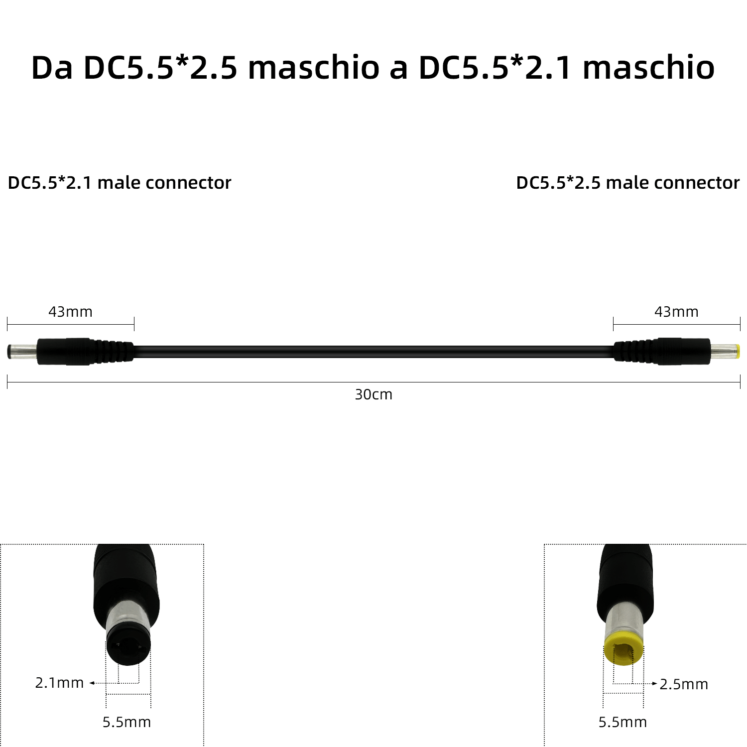 - Parameters: 12V/36V for power up to 120 watts Connector size: 5.5x2.1mm male to 5.5x2.5mm male, length: 1ft/1.6ft/3.3ft/6.5ft/9.8ft/16.4ft