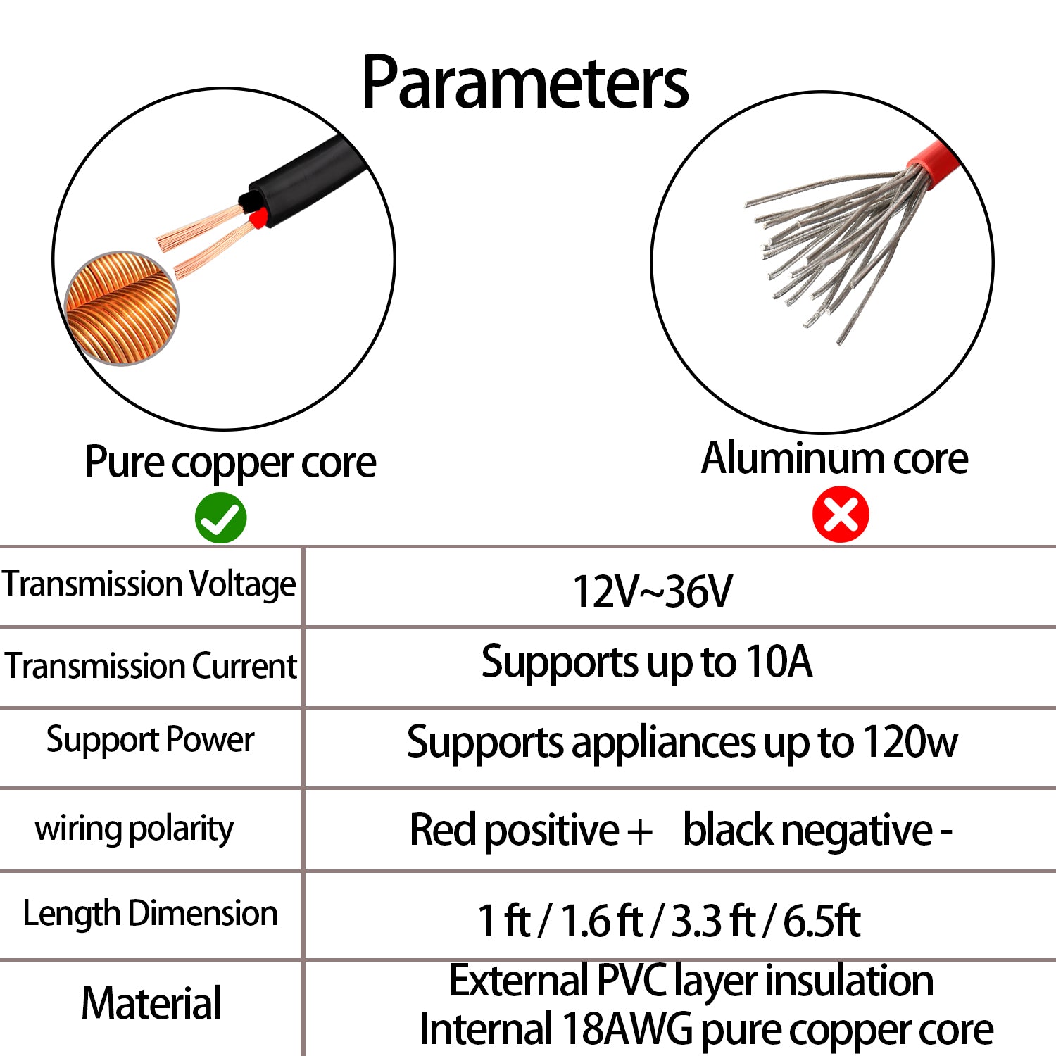 - DC5.5x2.5mm 12V High Power Male to Male DC Power Extension Cord Made of Oxygen Free Pure Copper Core Good Electrical Safety Performance Safe and Stable Durable