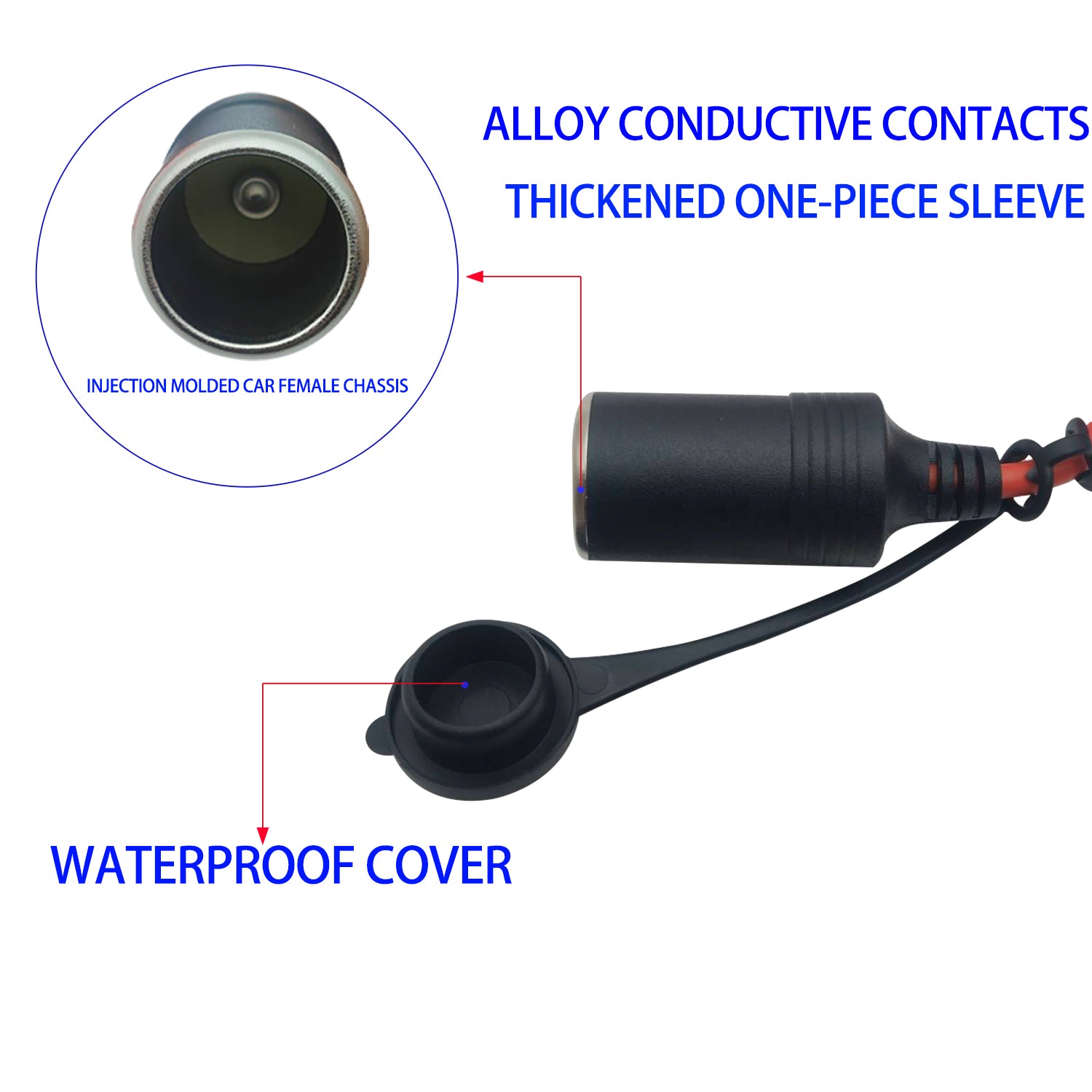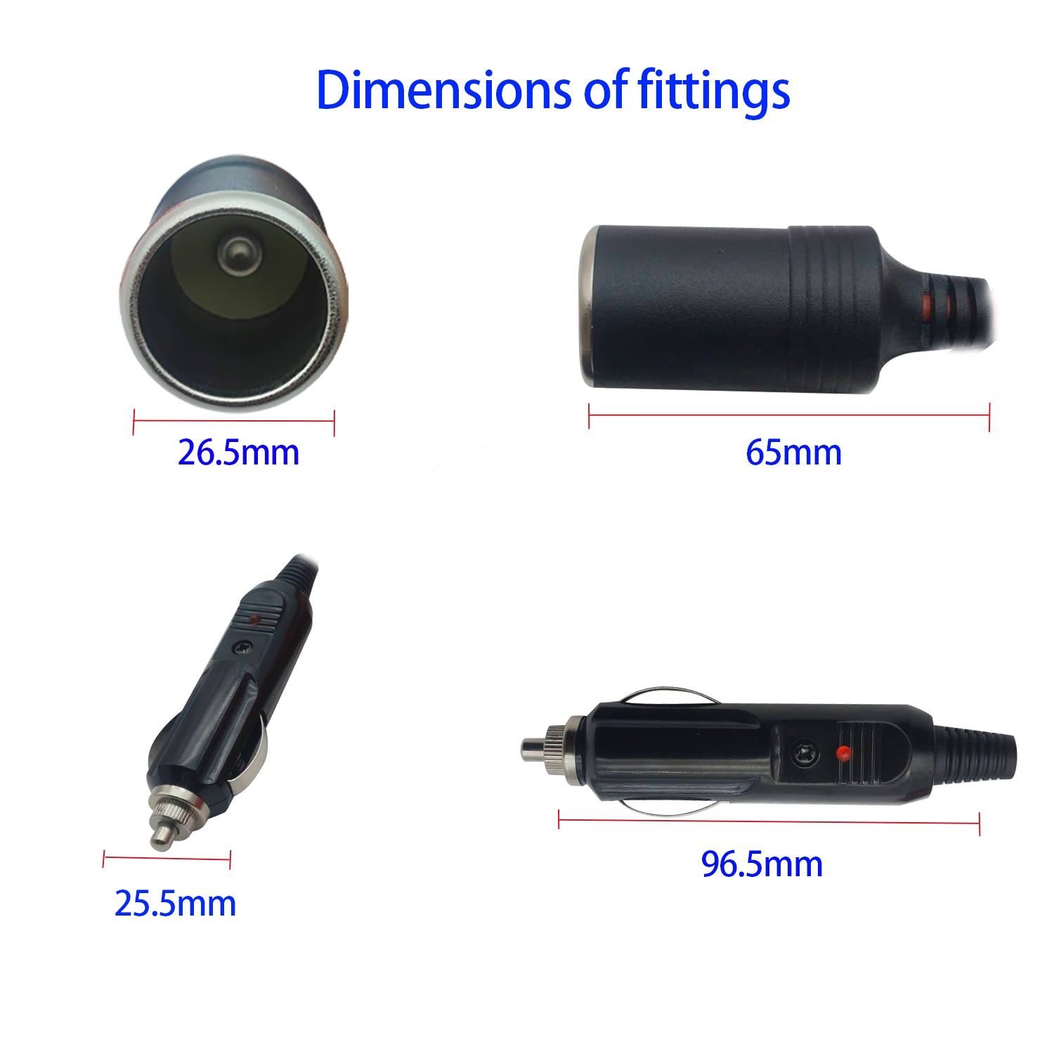 - Heavy-duty car cigarette lighter extension cord: the internal use, American Standard 18AWG 100% pure copper core made of good durability, and high quality conductivity, the external use of high-quality PVC double-layer insulating material made of high temperature resistance, abrasion resistance, resistance to tugging, corrosion prevention double-layer insulating material, and the outer part is made of high quality PVC double-layer insulating material.