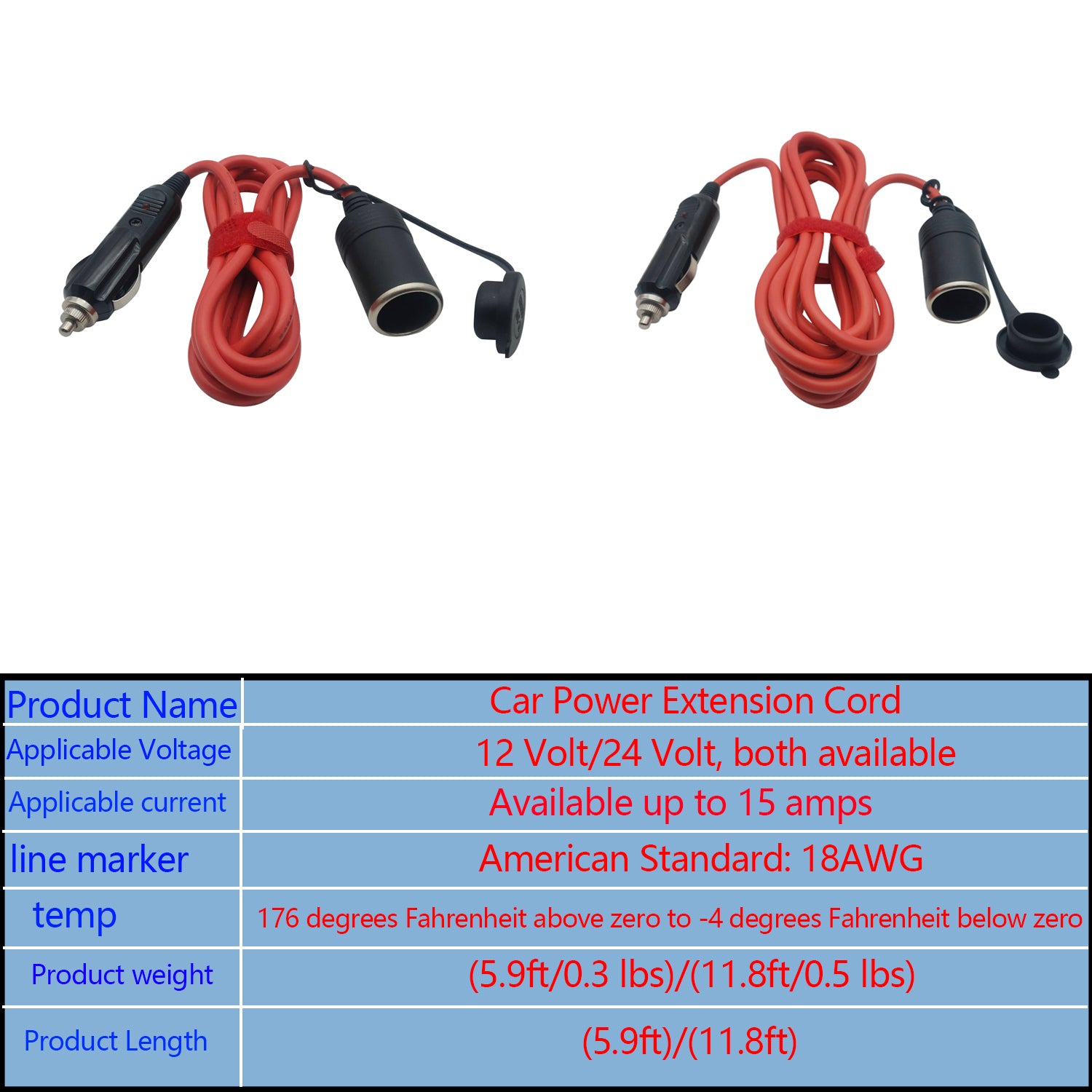 Heavy Duty Car Extension Cord, American Standard 18AWG, 12 Volt/24 Volt Automotive Car Extension Cord due to Tire Inflator, Cleaner, Convenient Refrigerator