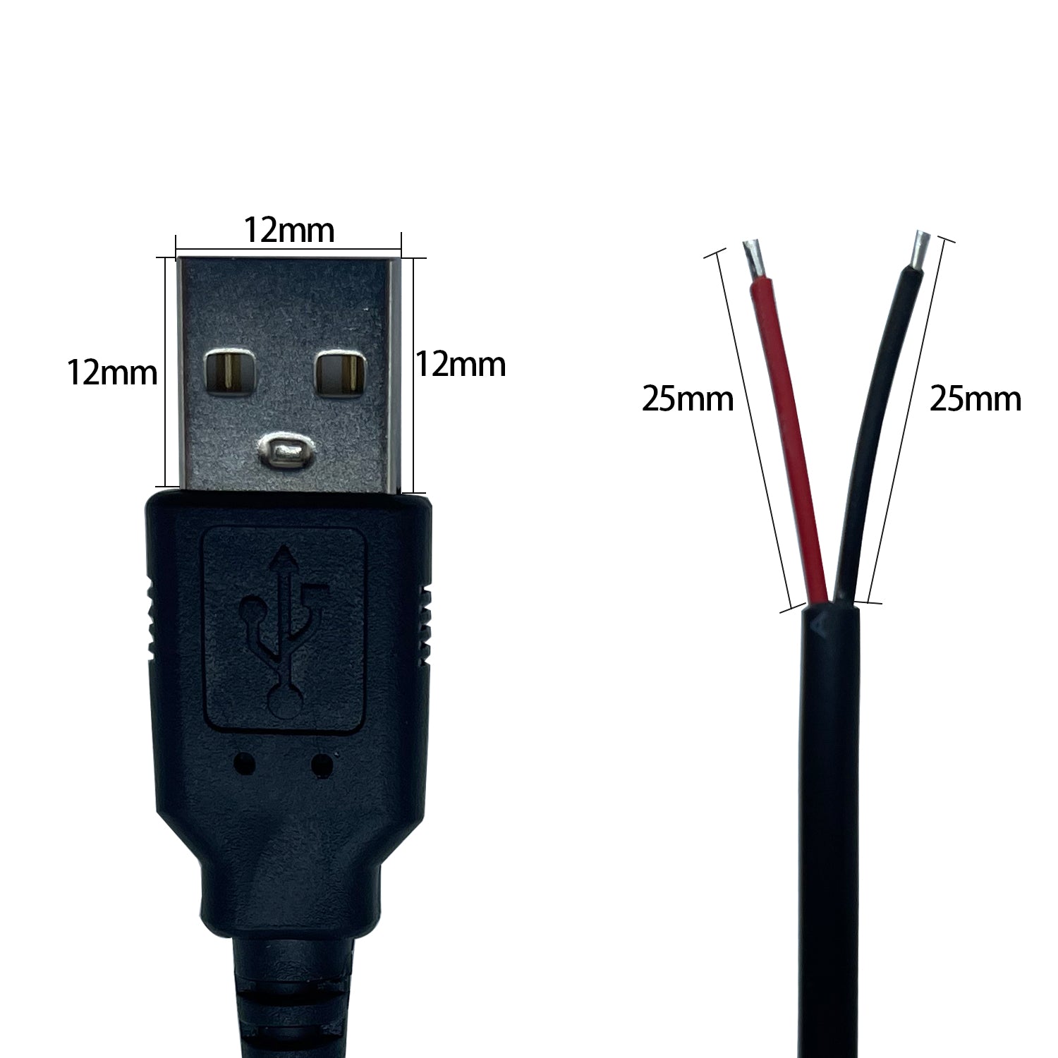 - Product Description: USB male DIY two-pin bare cable Power cord one end of the USB male socket, the other end of the two-pin bare cable, for USB 12V/3A device DIY power supply and maintenance replacement
