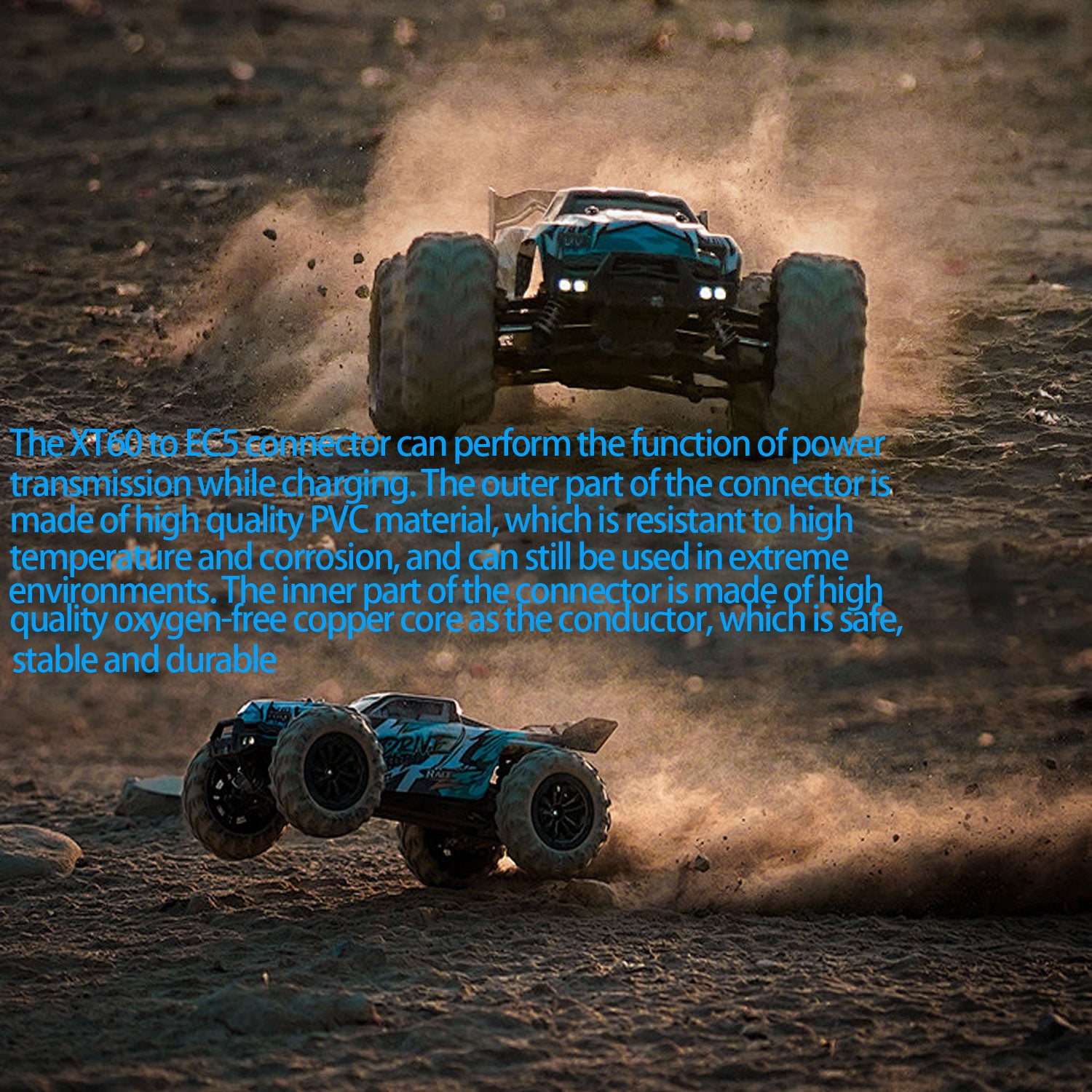 - Material: XT60 to EC5 The connector is made of high quality PVC insulation on the outside, which has good corrosion resistance and high temperature resistance Pure copper core is used as the conductor inside Conductivity is high Electrical properties are good Safety and stability Durability